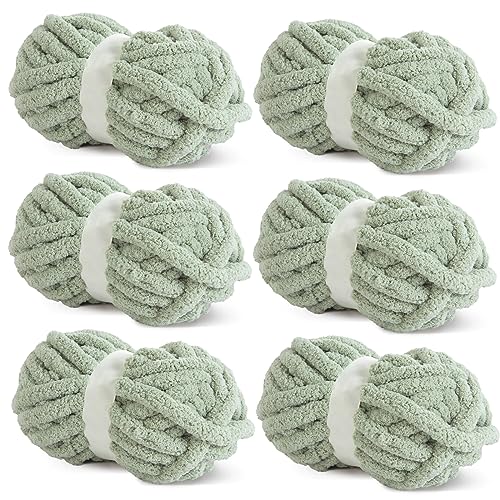 HOMBYS Sage Green Chunky Chenille Yarn for Crocheting, Bulky Thick Fluffy Yarn for Knitting,Super Bulky Chunky Yarn for Hand Knitting Blanket, Soft Plush Yarn, 6 Jumbo Pack (31.7 yds,8 oz Each Skein)