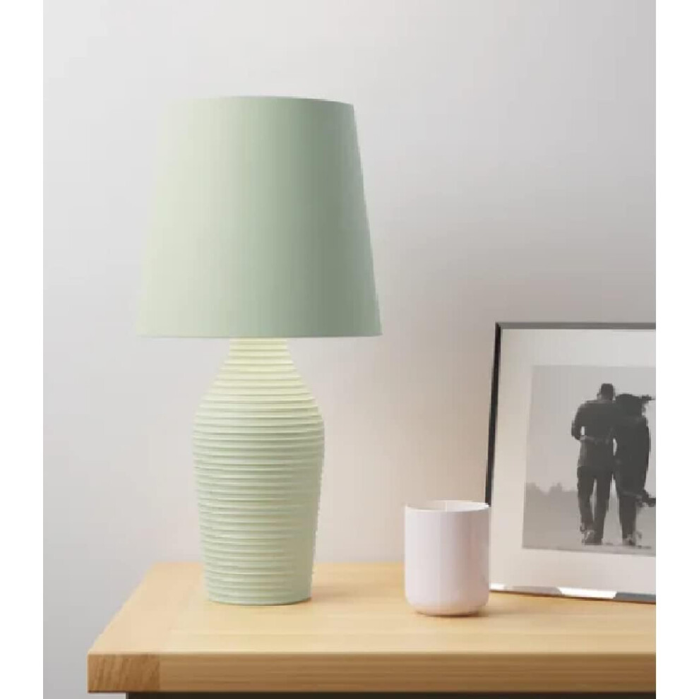 New Luna Stoneware Table Lamp with Faux Linen Fabric Shade-Sage Green
