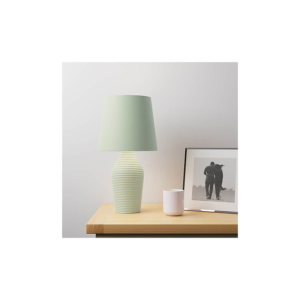 Table Lamp Matt Finished Pale Sage Green Ivory Cylinder Shade LED E27 60W