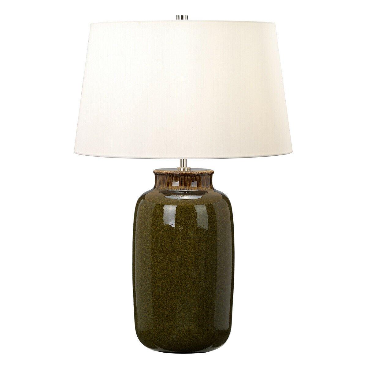 Table Lamp Green Brown Glaze Finish Brown Tapered Cylinder Shade LED E27 60W