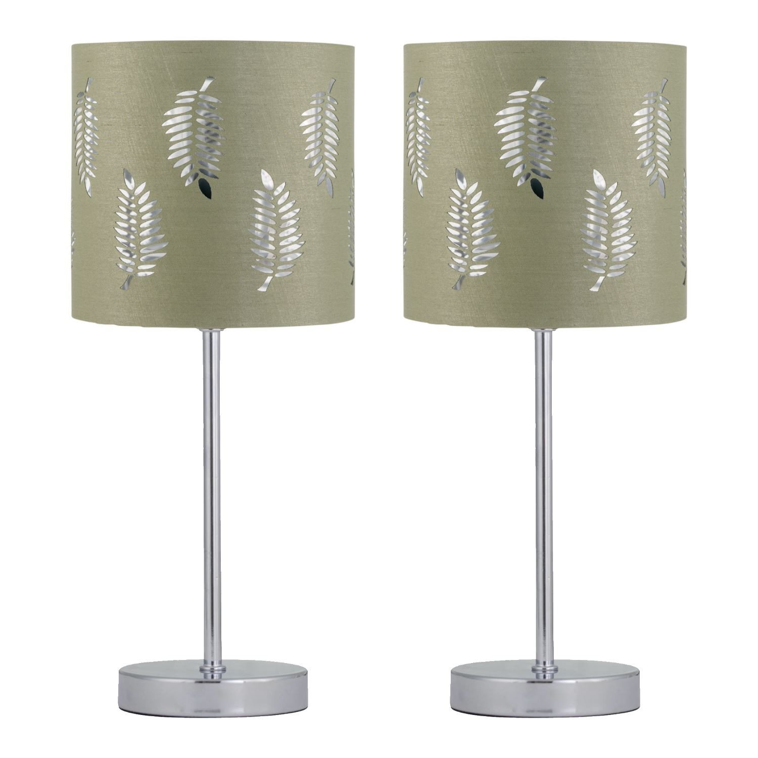 Set of 2 Modern Chrome 37cm Table Lamp Bedside Light Sage Green Fern Shade