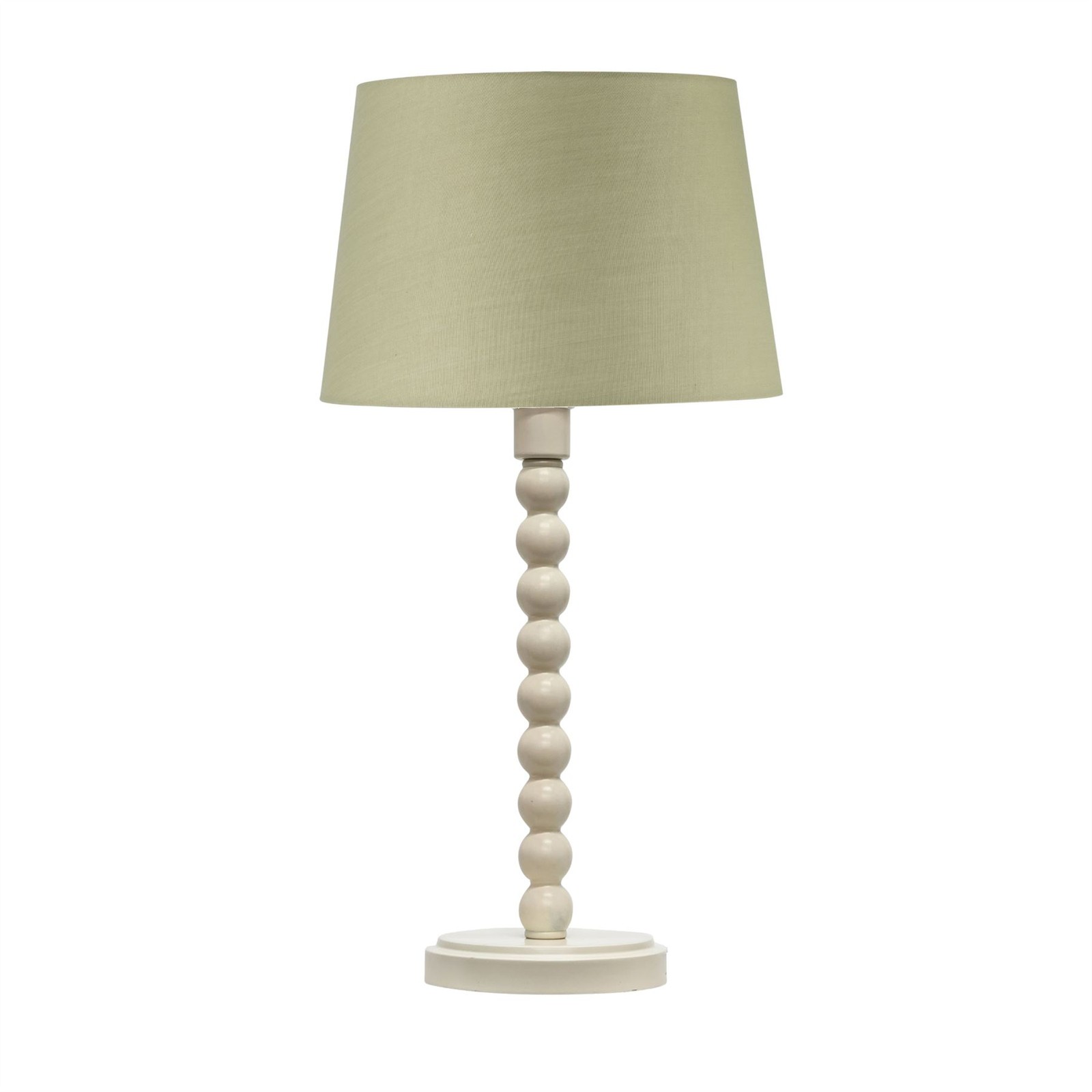 Bobbin Cream Off White Table Lamp Bedside Light with Sage Green Cotton Shade