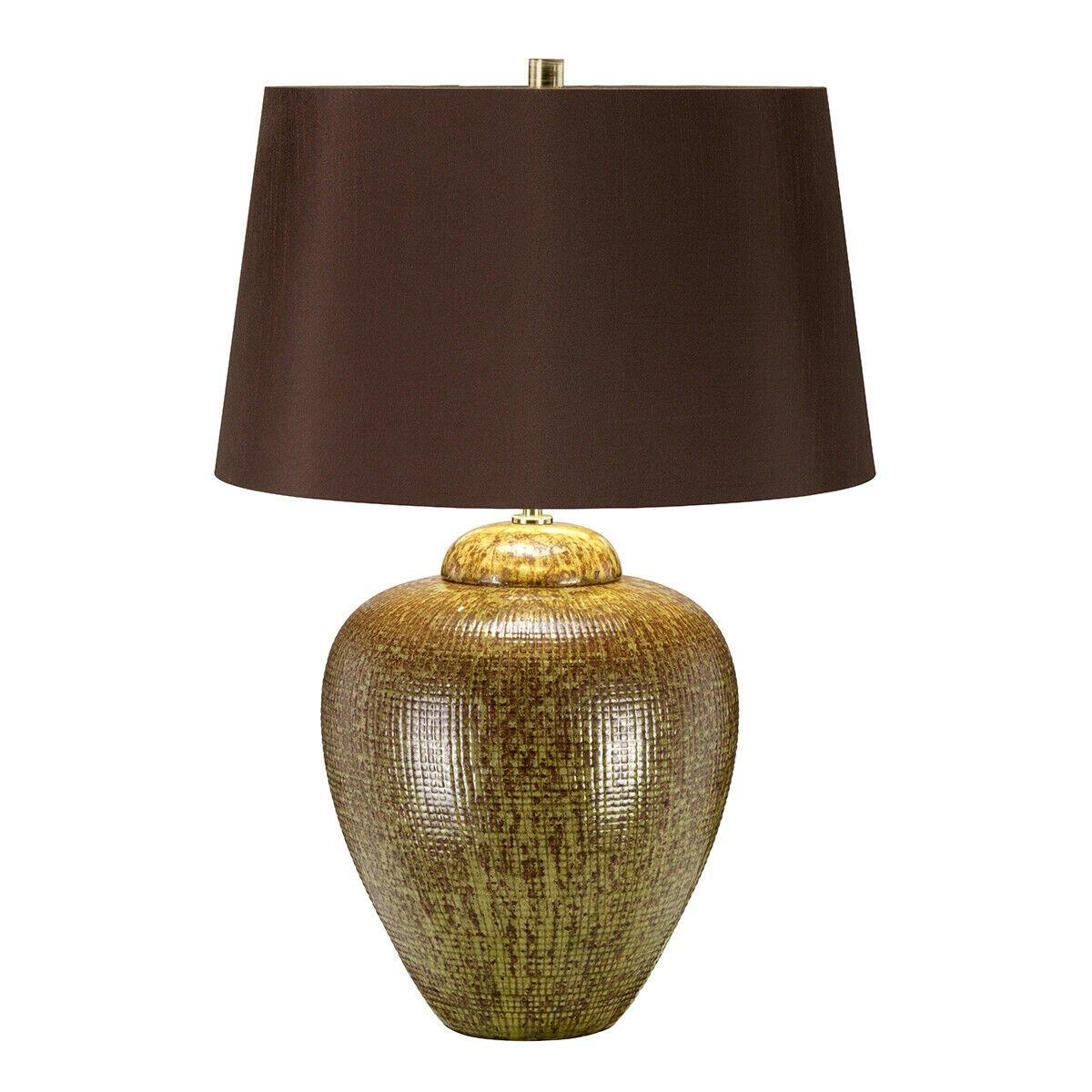 Table Lamp Ceramic Textured Green & Brown Glaze Brown Shade LED E27 60W