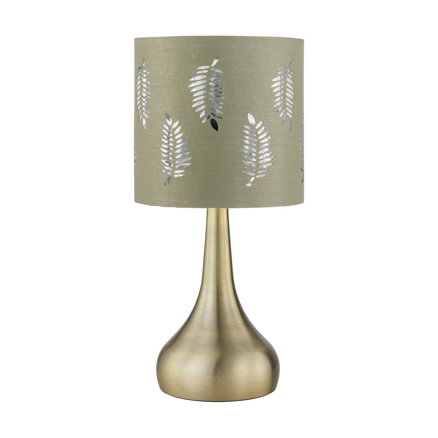 Modern Antique Brass Touch Table Lamp Bedside Light Sage Green Fern Shade