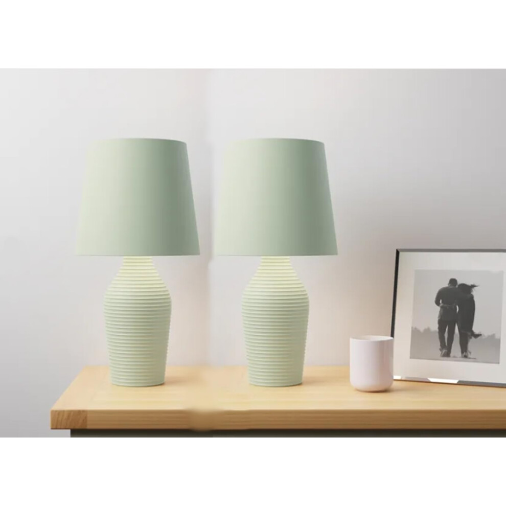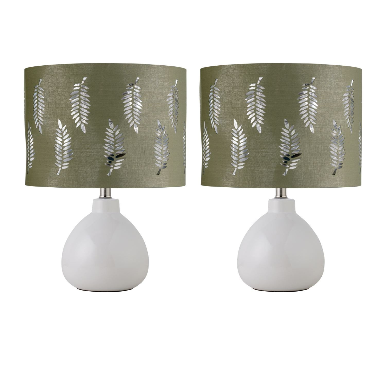 Set of 2 Modern White 43cm Table Lamp Bedside Lights Sage Green Fern Shade