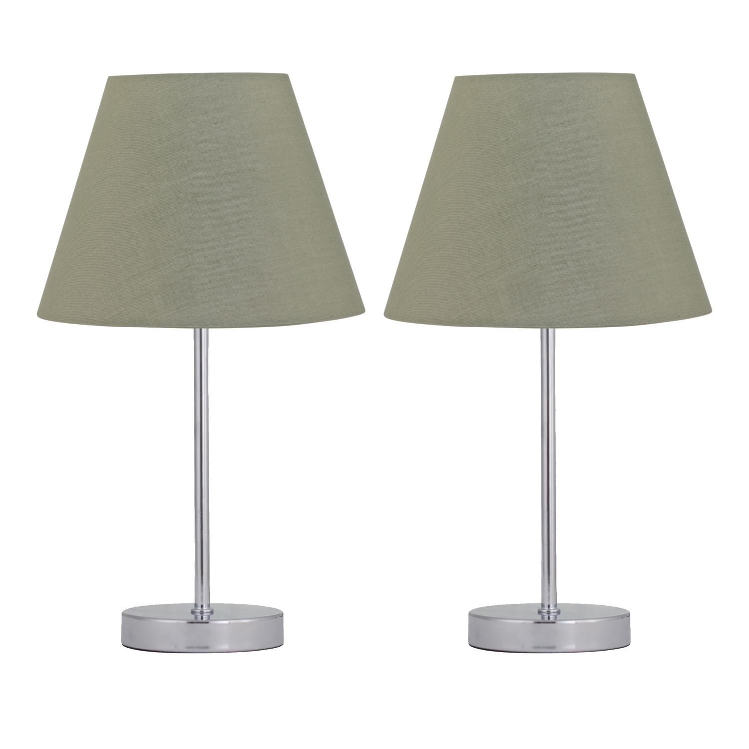 Set of 2 Modern Chrome 35cm Table Lamp Bedside Light Sage Green Shade