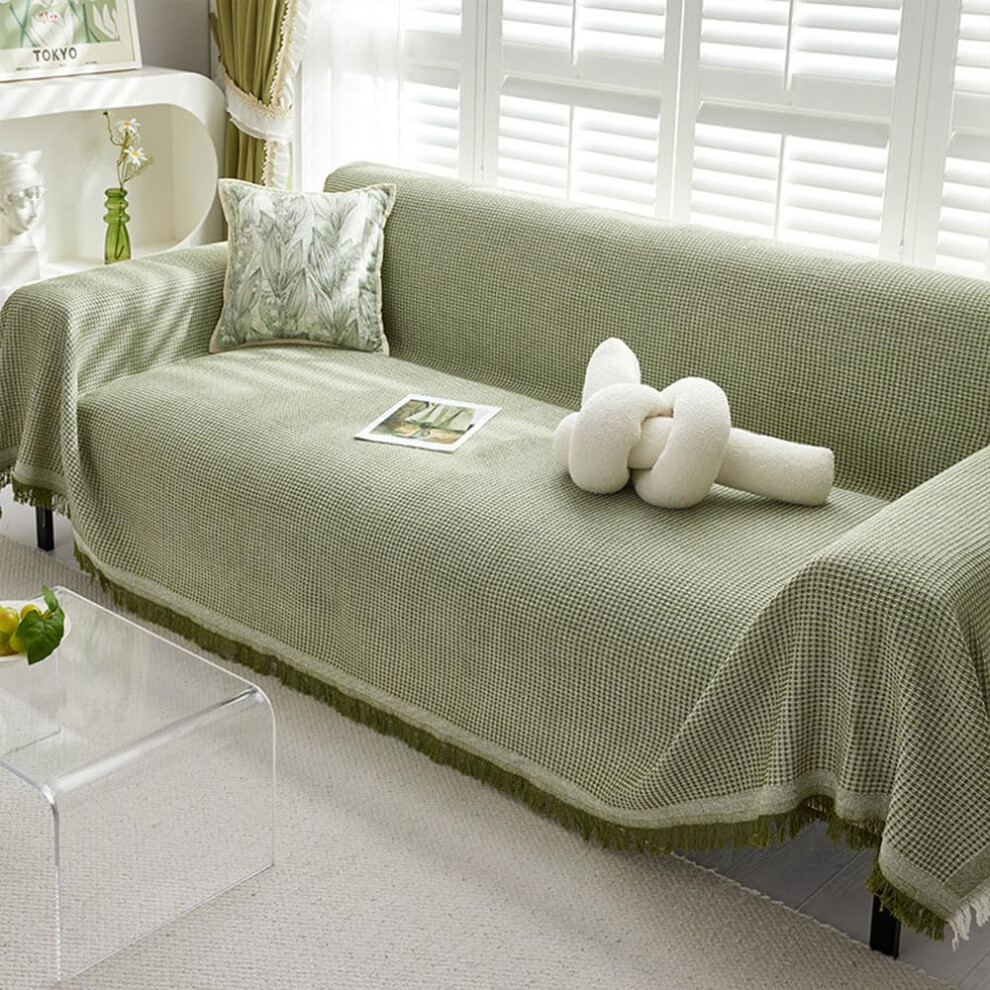 Highdi Sofa Throws Large, Nordic Style Extra Large Throws For Settees Versatile Woven Soft Throw Blanket with Tassels for Settees Couch Armchair Sofa Bed (180x230cm,Sage Green)