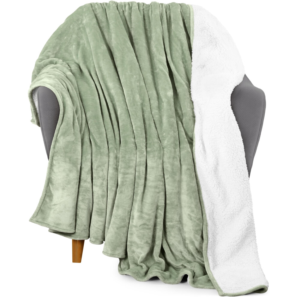 Utopia Bedding Sherpa Blanket Throw Size Sage Green 50x60 Inches - 480GSM Thick Warm Plush Fleece Reversible Blanket for Bed Sofa Couch Camping an