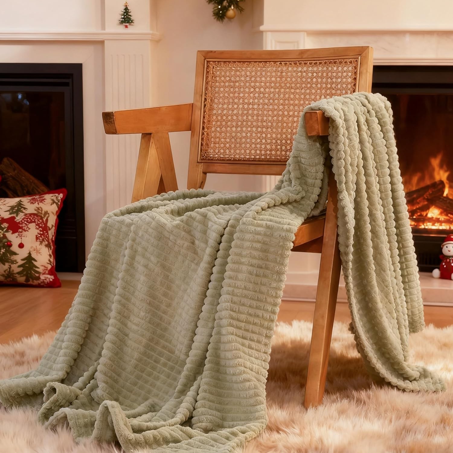 EMME Fleece Throw Blanket for Sofa, Soft, Fluffy, 150 x 200cm, 3D Touch Experience, Warm Cozy Throw, Versatile Single Flannel Blanket for Bed, Couch, Sofa, Armchairs, Sage Green