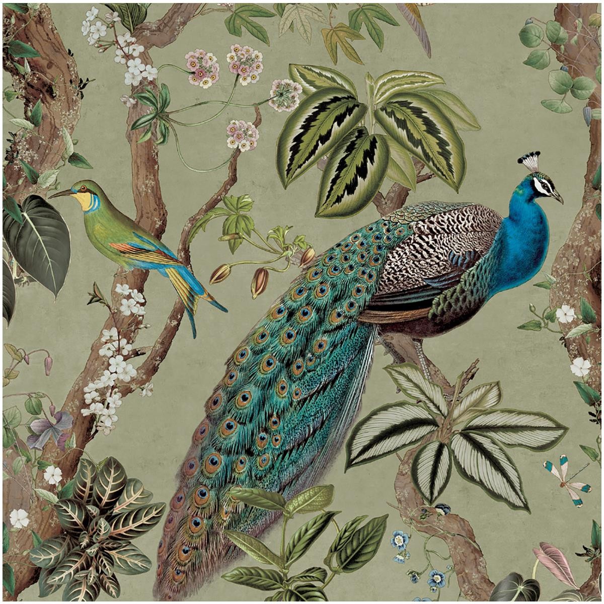 Peacock Woods Sage Green Wallpaper Holden Decor Floral Birds Botanical Tropical