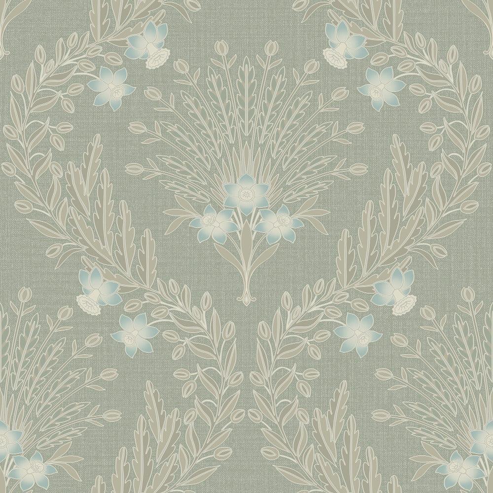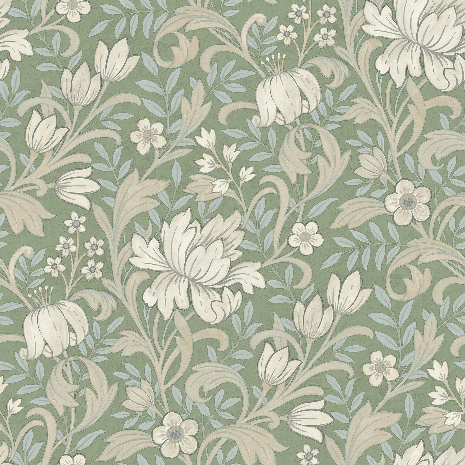 Grandeco Marian Sage Green Floral Flower Wallpaper Modern Contemporary