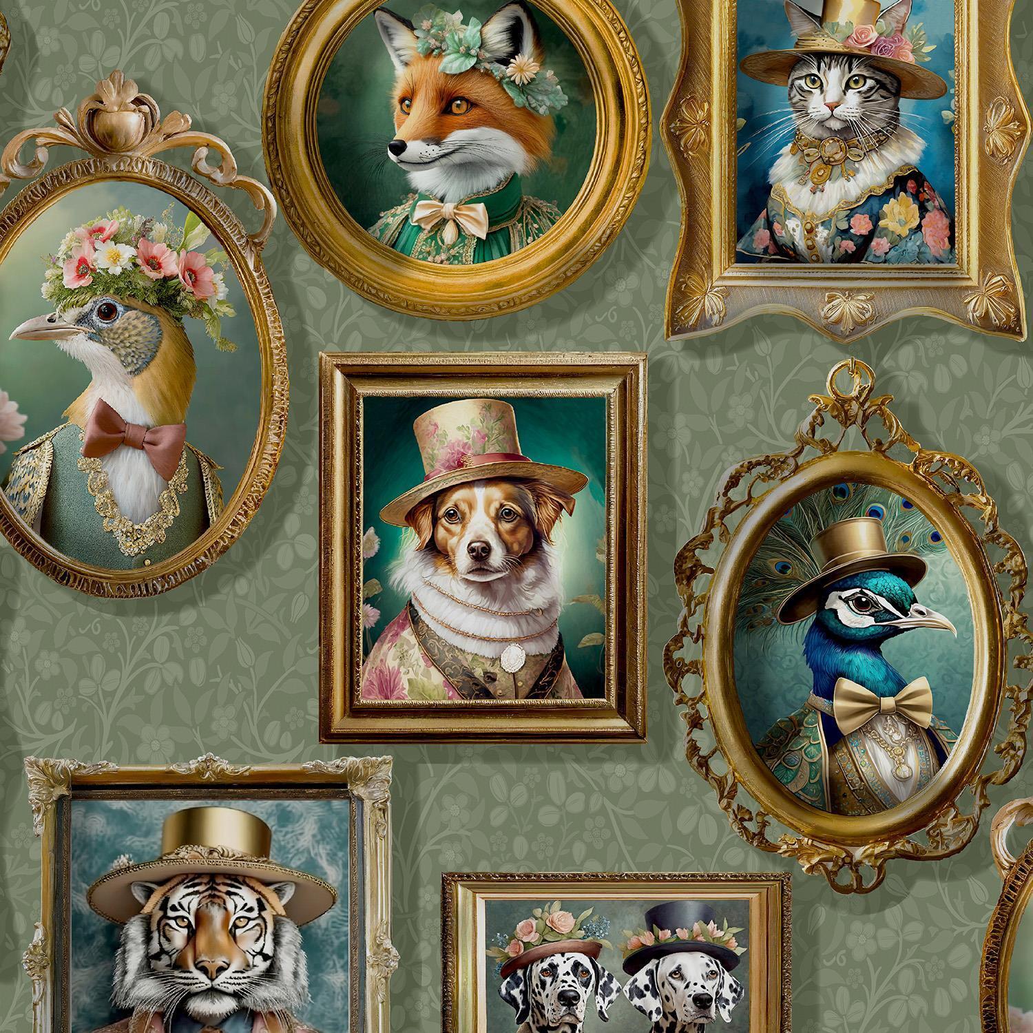 Holden Decor Regal Beasts Sage Green Wallpaper Animal Print Trendy Feature Wall