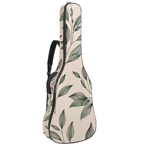 Sage Color Line Leaves and Twig on Beige Background Acoustic Guitar Bag Thick Padded, Waterproof Guitar Gig Bag for 40 41 42 Inch Guitars