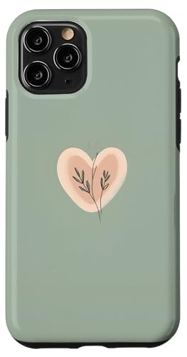 Minimalist Heart Line Art Aesthetic Boho Sage Green Floral Case for iPhone 11 Pro