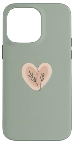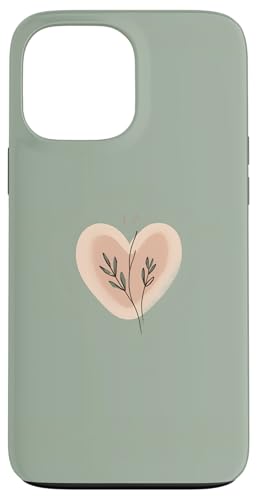 Minimalist Heart Line Art Aesthetic Boho Sage Green Floral Case for iPhone 13 Pro Max