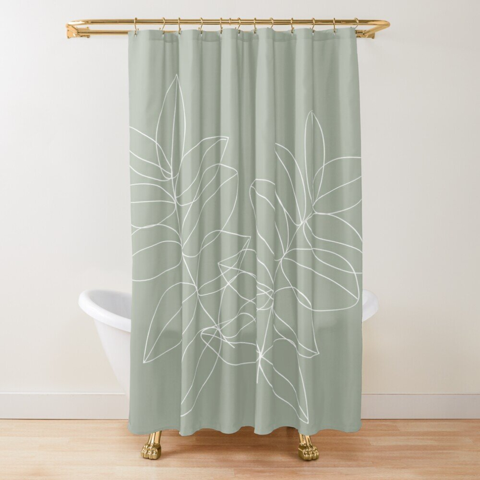 Shower Curtains Sage green leaf line art for Bathroom Decor 72x72 inches