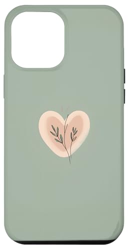 Minimalist Heart Line Art Aesthetic Boho Sage Green Floral Case for iPhone 12 Pro Max
