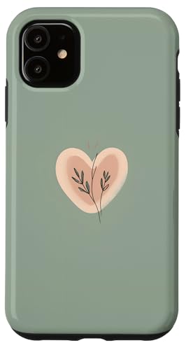 Minimalist Heart Line Art Aesthetic Boho Sage Green Floral Case for iPhone 11