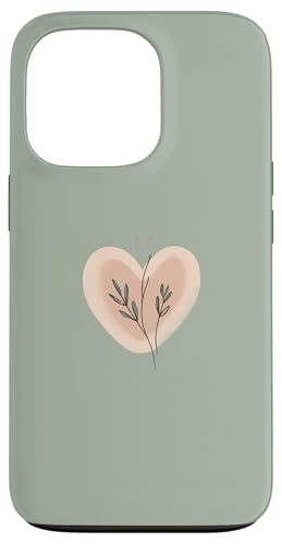 Minimalist Heart Line Art Aesthetic Boho Sage Green Floral Case for iPhone 13 Pro
