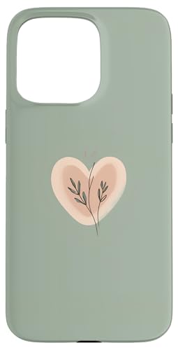 Minimalist Heart Line Art Aesthetic Boho Sage Green Floral Case for iPhone 15 Pro Max