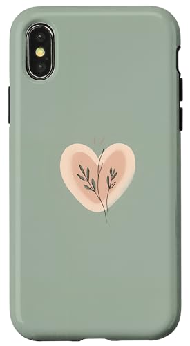 Minimalist Heart Line Art Aesthetic Boho Sage Green Floral Case for iPhone X/XS