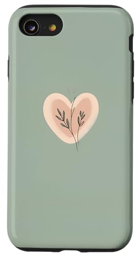 Minimalist Heart Line Art Aesthetic Boho Sage Green Floral Case for iPhone SE (2020) / 7/8