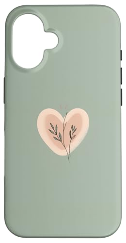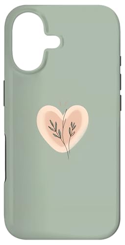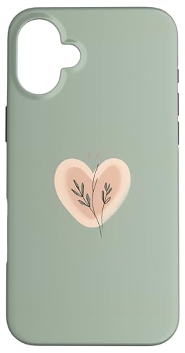 Minimalist Heart Line Art Aesthetic Boho Sage Green Floral Case for iPhone 16