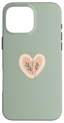 Minimalist Heart Line Art Aesthetic Boho Sage Green Floral Case for iPhone 16 Pro Max