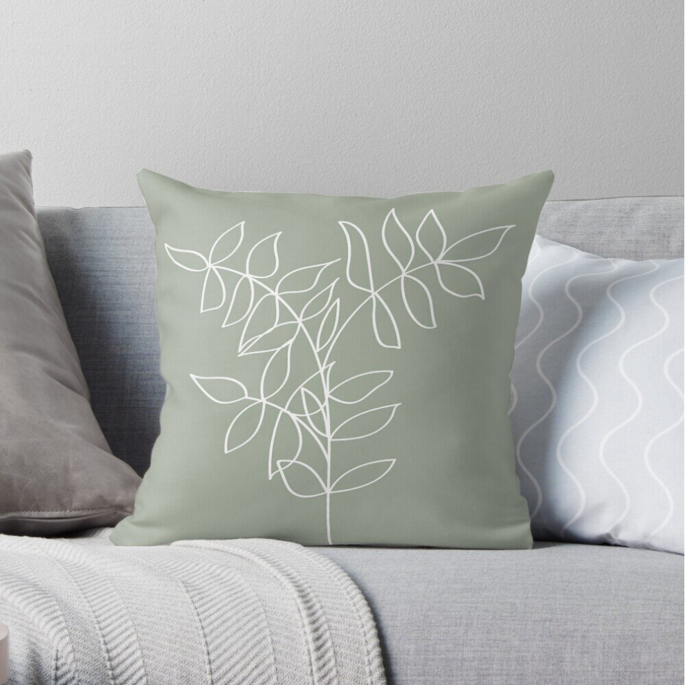 Pillow Cases Sage Green, Plant Line Art Illustration Throw Cover 12x12 16x16 18x18 inch 7 Size