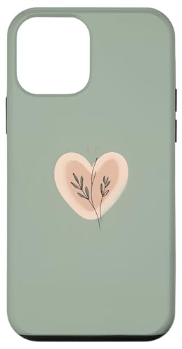 Minimalist Heart Line Art Aesthetic Boho Sage Green Floral Case for iPhone 12/12 Pro