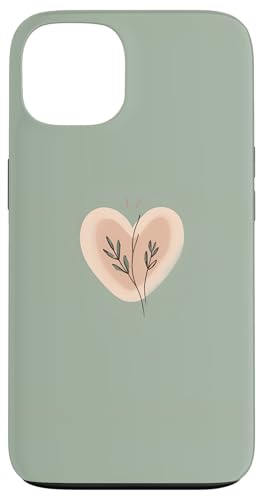 Minimalist Heart Line Art Aesthetic Boho Sage Green Floral Case for iPhone 13