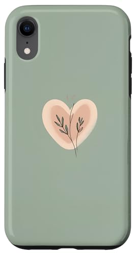 Minimalist Heart Line Art Aesthetic Boho Sage Green Floral Case for iPhone XR