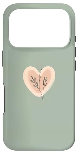 Minimalist Heart Line Art Aesthetic Boho Sage Green Floral Case for iPhone 17 Pro
