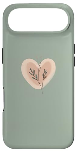 Minimalist Heart Line Art Aesthetic Boho Sage Green Floral Case for iPhone Air