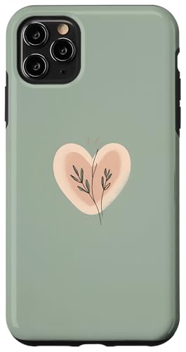 Minimalist Heart Line Art Aesthetic Boho Sage Green Floral Case for iPhone 11 Pro Max
