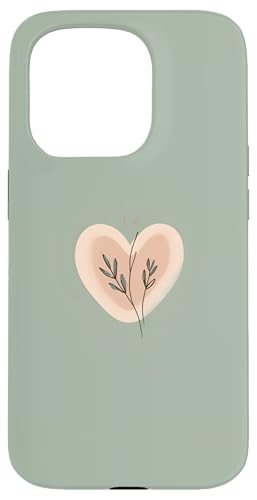 Minimalist Heart Line Art Aesthetic Boho Sage Green Floral Case for iPhone 15 Pro