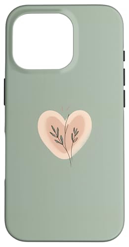 Minimalist Heart Line Art Aesthetic Boho Sage Green Floral Case for iPhone 16 Pro