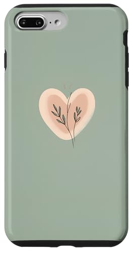 Minimalist Heart Line Art Aesthetic Boho Sage Green Floral Case for iPhone 7 Plus/8 Plus