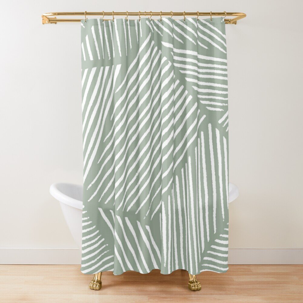 Shower Curtains Geometric Sage Green Modern Line Art Throw Pillow for Bathroom Decor 72x72 inches
