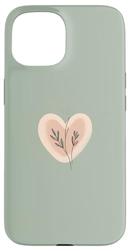 Minimalist Heart Line Art Aesthetic Boho Sage Green Floral Case for iPhone 15