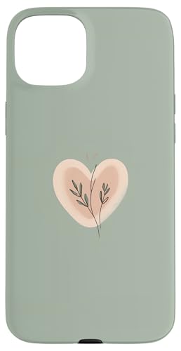 Minimalist Heart Line Art Aesthetic Boho Sage Green Floral Case for iPhone 15 Plus