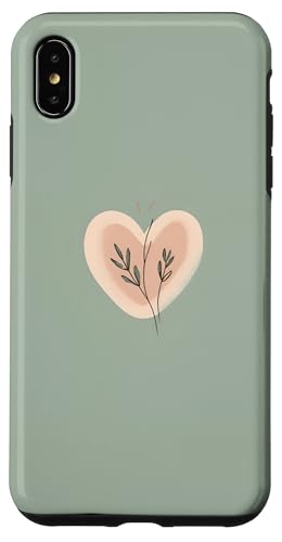 Minimalist Heart Line Art Aesthetic Boho Sage Green Floral Case for iPhone XS Max
