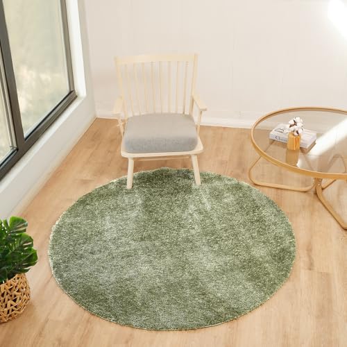 Livabliss Shaggy Rug Shaggy Rug - Modern Berber Rug Living Room 120x120 cm, Soft Shaggy Rugs for Bedroom - Neutral Boho Fluffy Rug, Easy Care Plush Thick Pile - Round Rug, Sage Rug