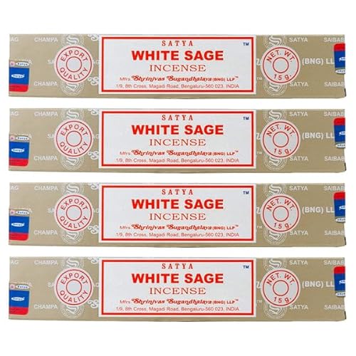 Satya White Sage Incense Sticks 15 Grams x 4 Packs | For Meditation, Yoga, Healing, Aromatherapy, Relxation, Spirituality |