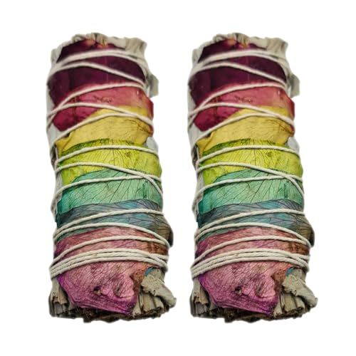 VIE Pack of 2, White Sage with Chakra Petals Sage Smudge Sticks(4”)–Premium,Natural & Ethically Sourced for Smudging,Home Cleansing & Energy Healing | Remove Negative Energy | Spiritual Home Gift
