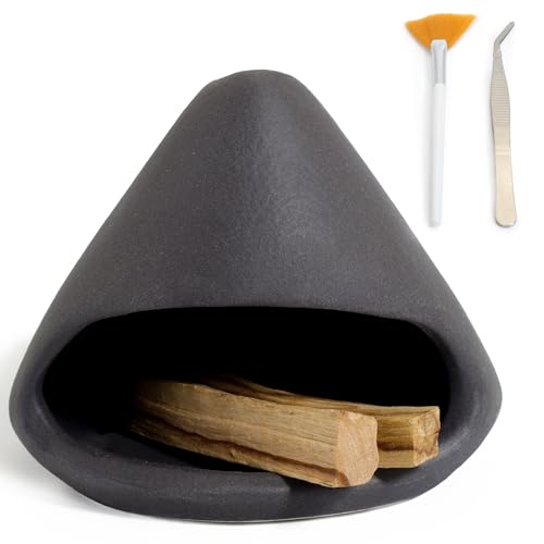 BEYLAB Clay Sculpture Palo Santo Holder - Ceramic Incense Burner for Wood Sticks, Sage, Cone Incense Energy Purifying Smudge Bowl Dish Handcrafted Gift for Meditation and Aromatherapy Courses - Black