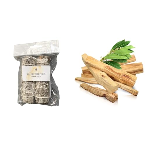 2x White Sage 4" Smudge Sticks & PORTENTUM Natural Palo Santo Incense - 50 gr. (1.76 ounces 4-7 pcs.) Origin Peru - Sacred Wood for Burning, Authentic Palosanto, Palo Santo Incense in Premium Pack