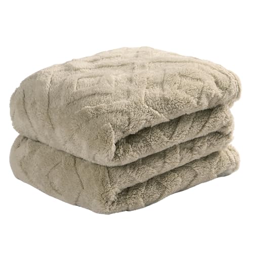 EMME Fleece Throw Blanket for Sofa, Soft, Fluffy, 150 x 200cm, 3D Touch Experience, Warm Cozy Throw, Versatile Single Flannel Blanket for Bed, Couch, Sofa, Armchairs, Sage Green