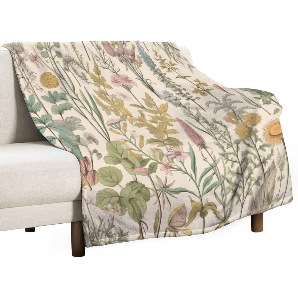 Vintage Sage Green Fleece Throw Blanket with Wildflowers, 40"x50", Compatible with All Seasons