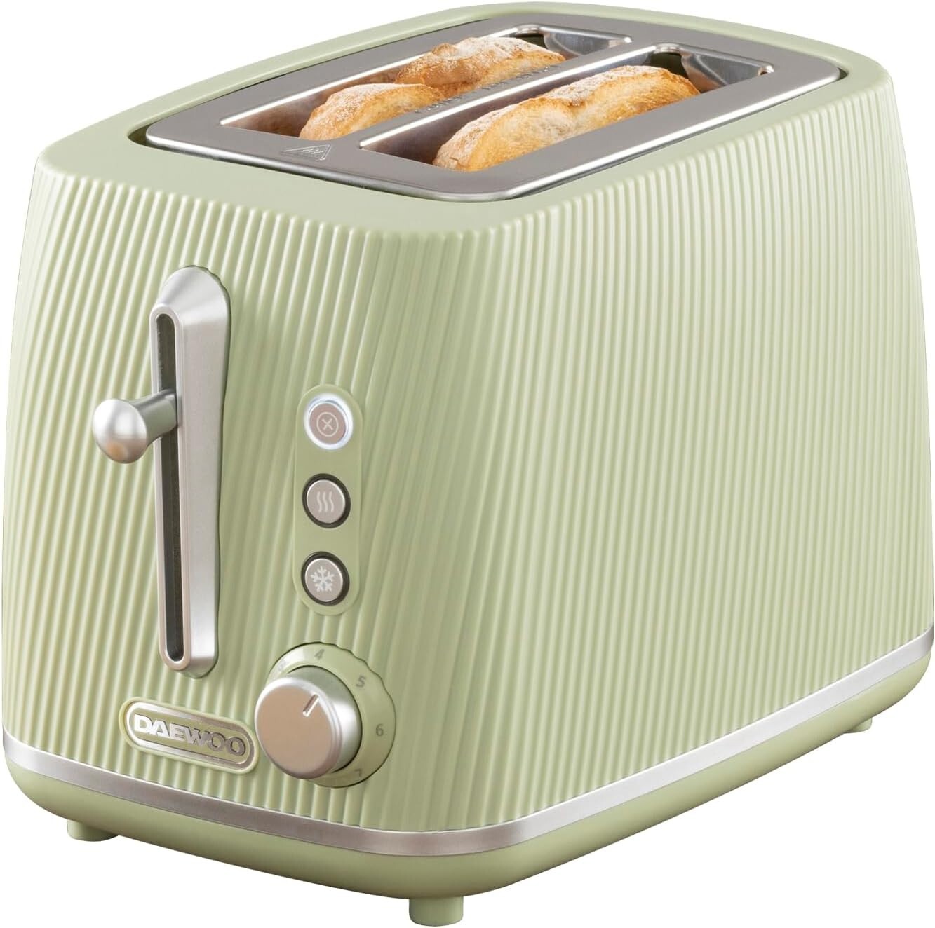 Daewoo Cascade 2 Slice Toaster Sage Ribbed Texture Design SDA2777GE